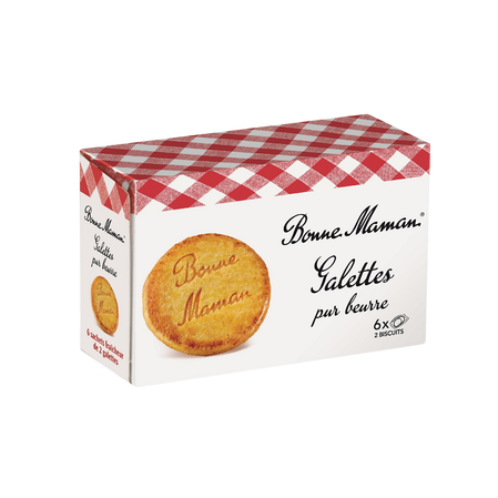 Thanks to its inimitable know-how and the quality of its ingredients, Bonne Maman offers you the very best, simply for your pleasure. The traditional recipe for pure butter galettes; crisp and deliciously buttery. No coloring, no preservatives and made in France.